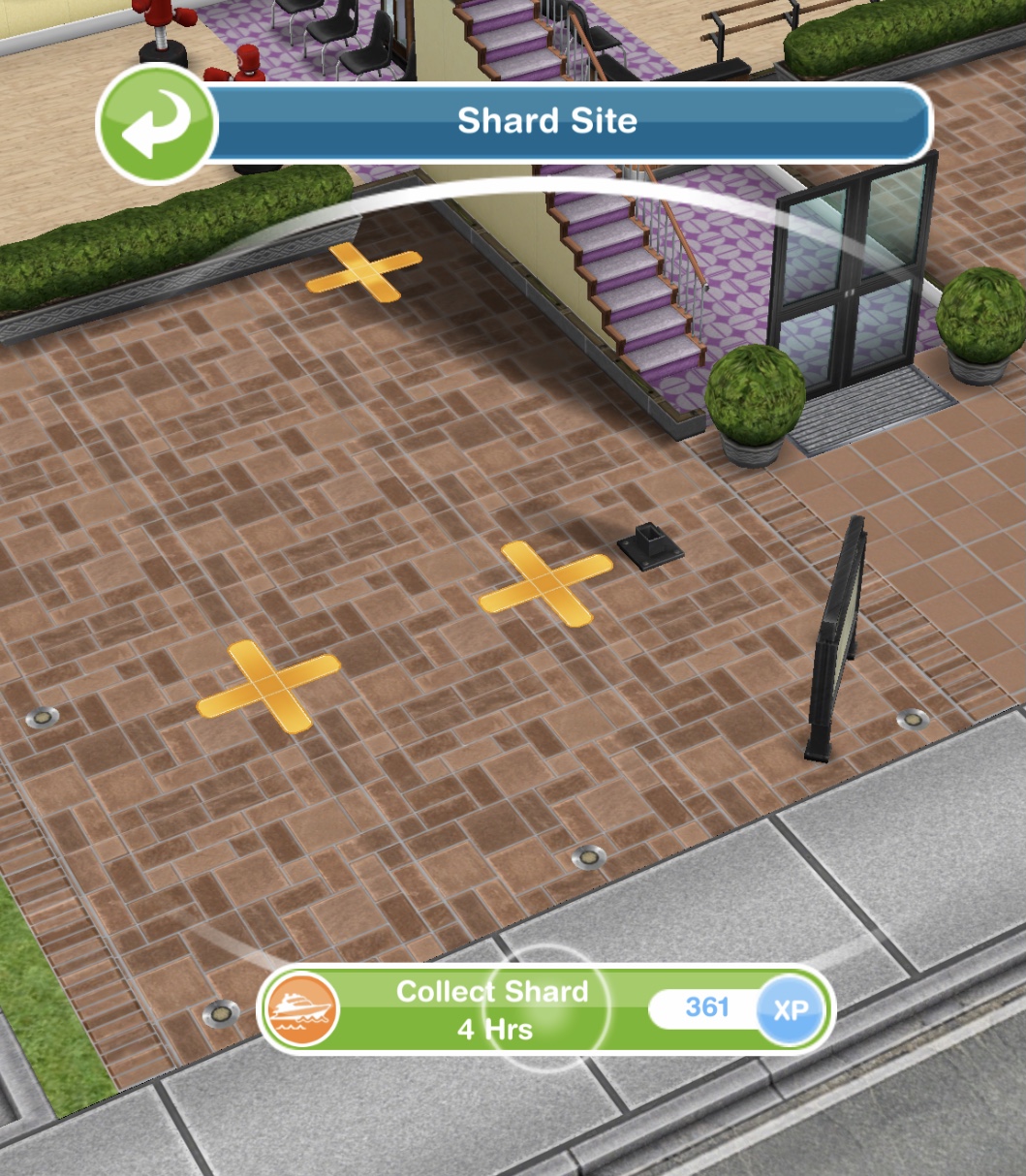 • Assign a sim to an x- once at the location you need to find the 3 x spots (this differs from a DD event as they only have 2 spots) have a sim click on one of these and select Collect Shard- 4 hours (3hrs 48m inspired sim)