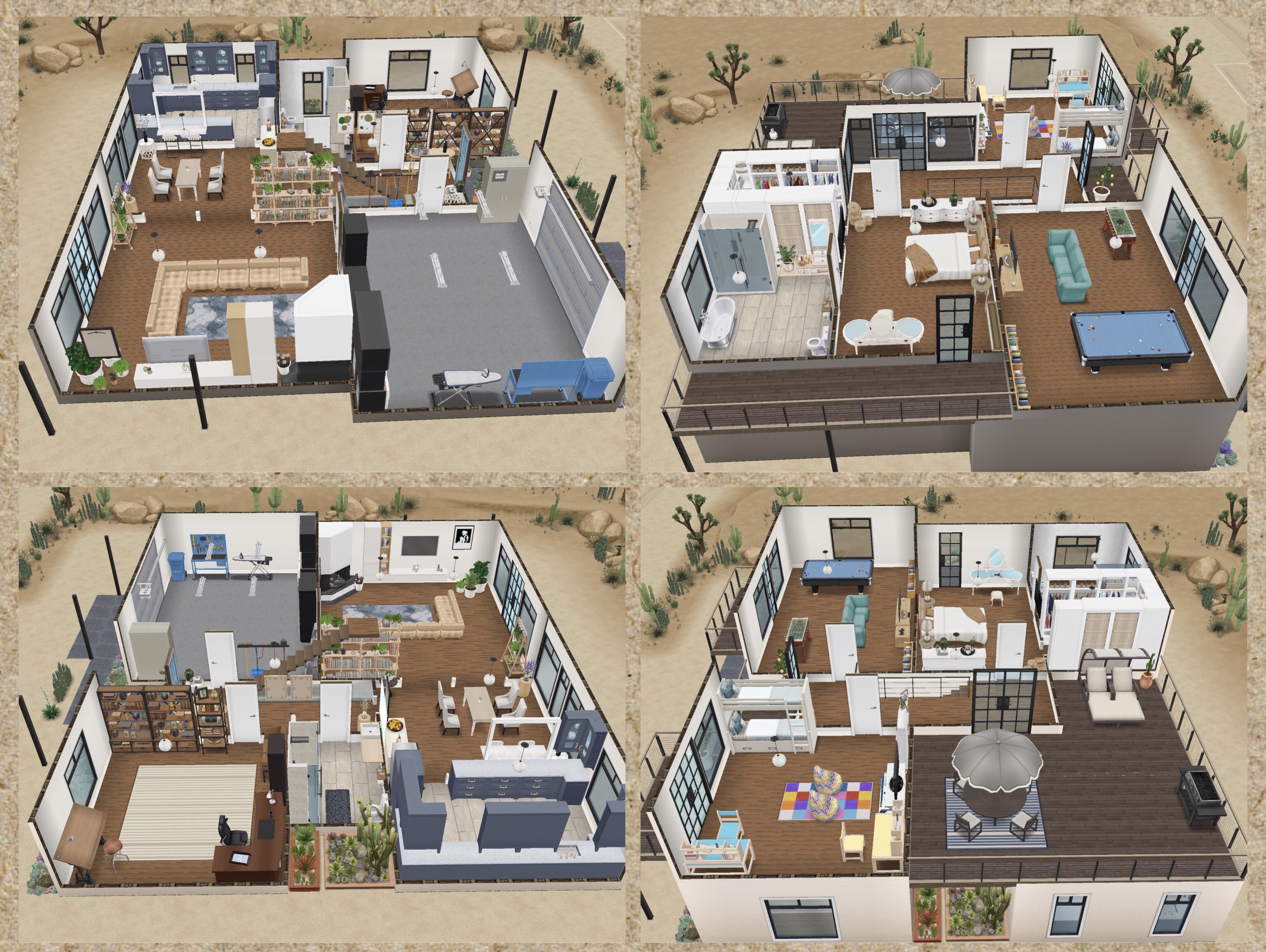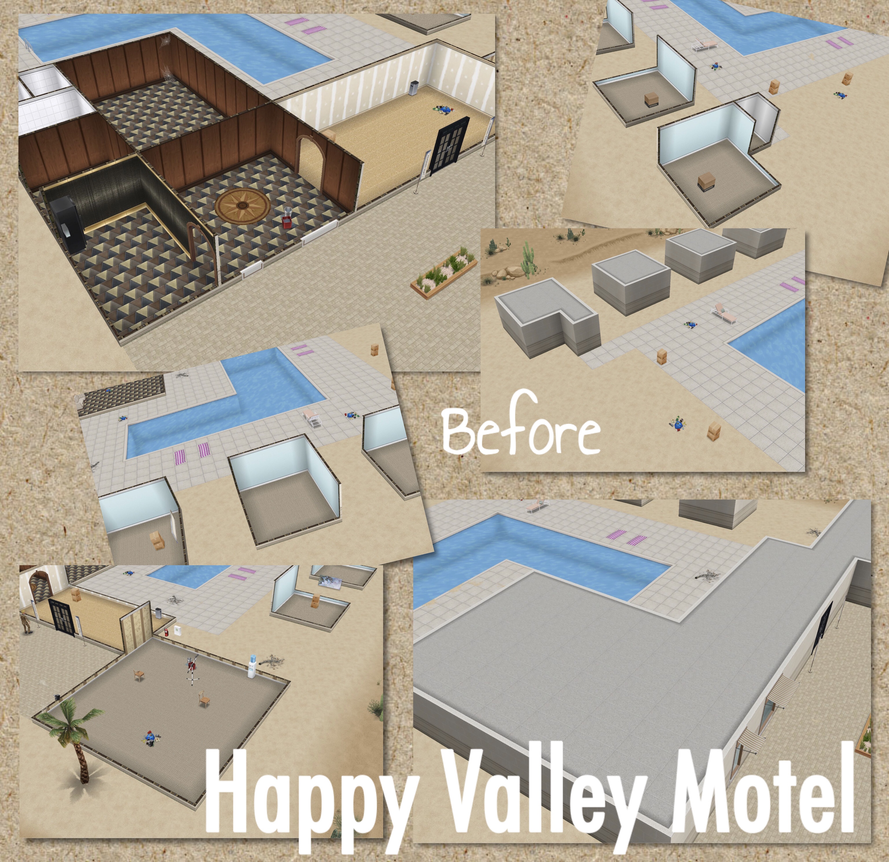 3 of the lots are house lots and the final lot, Happy Valley Motel is a community lot which once unlocked can still be customised like a normal house lot but your sims cannot live in them. You will also be able to place any item from the bedroom section of buy mode in the community lot for free!
