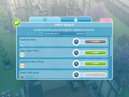 NOTE: remember to click CLAIM once you have completed a daily goal to collect the reward and remember to claim your free constructor coins and free items each day!
