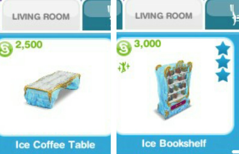 Fourth Set: Complete to unlock ice themed coffee table and bookcase