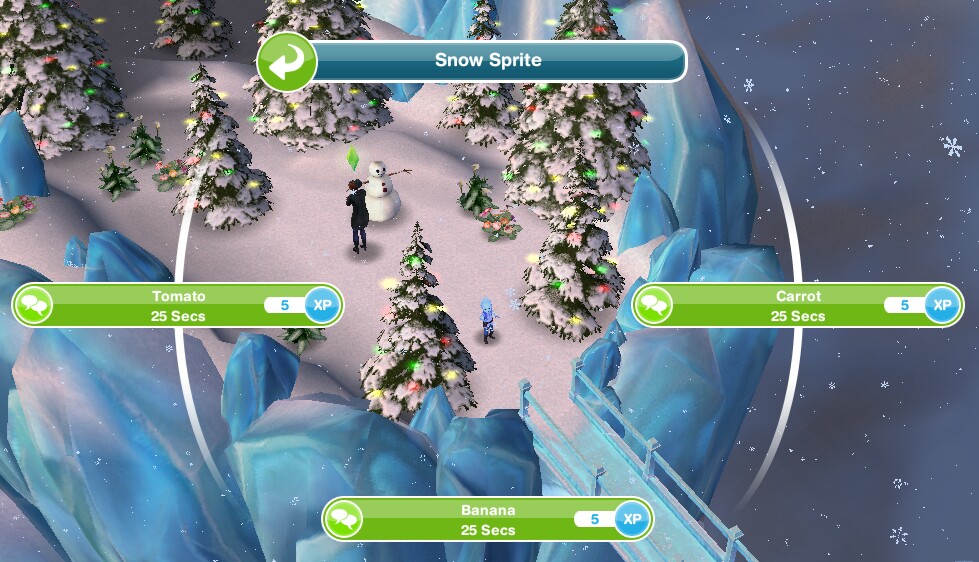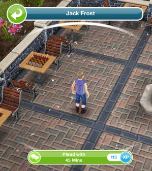 - Sneak up on Jack- 1 second (if blue footprints appear try having your sim move away from Jack before selecting the task or send a sim to the ice palace, they should follow then go back to the park)