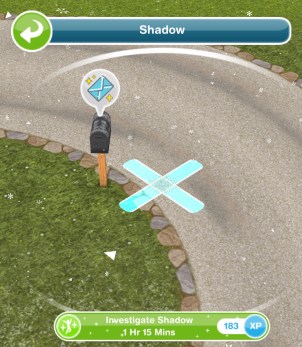 - Investigate the shadow- 1 hour 15 minutes (x by front of house)