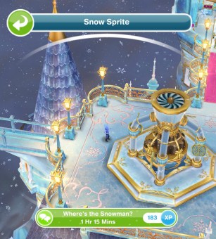 - Roll a ball of snow at the ice palace- 2 hours 15 minutes (click on the x)