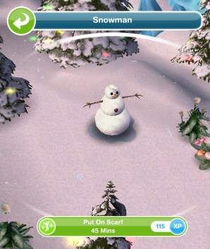 - Build up the snowman’s confidence- 1 hours 15 minute (choose ‘you’d even look good naked or ‘your scarf looks suave!’)