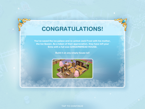 If you completed this quest in the time limit you will be able to build the Gingerbread House in your Simtown, keep reading for information and pictures of all the prizes you unlock in this quest
