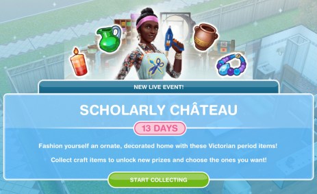 Complete this brand new live event (starts 1st August) to unlock Victorian themed items and if you complete the whole event in the time limit you unlock the Scholarly Chateau house template. This event is only here for 13 days and the aim of it is to collect enough arts and crafts items from the arts and crafts stations (found in the event tab of buy mode) to unlock all the items in this event.