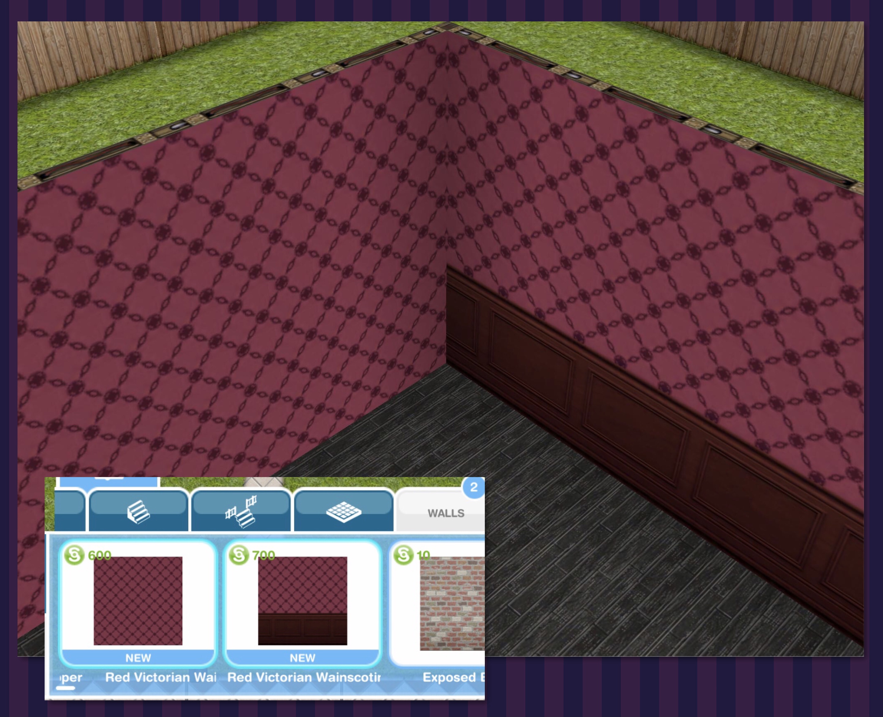 Walls: Red Victorian Wainscoting Upper (S600) and Lower (S700)