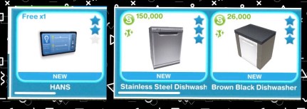 • 3 Star Rating: Brown Newspapers (3SP) Walnut Canvas Chair (9SP) Industrial Walnut Shelf (5SP) Industrial Walnut Side Table (6SP) Industrial Bronze Peace Lily (10SP) Industrial Black Mirror (11SP) Beige Wardrobe Trunk (5SP) Walnut Garment Rack (9SP) Industrial Bronze Queen (24SP) Walnut Drying Rack (7SP) Industrial Walnut Sink (5SP) Green Clothes Pile (2SP) Industrial Silver Washer (19SP) Industrial Silver Dryer (19SP)