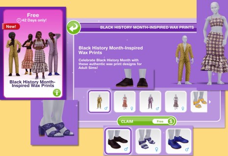 7. I also got a Free “Black History Month-Inspired Wax Prints” pack (39 days) in the “Specials” section. I have screenshots if you’d like them 🙂