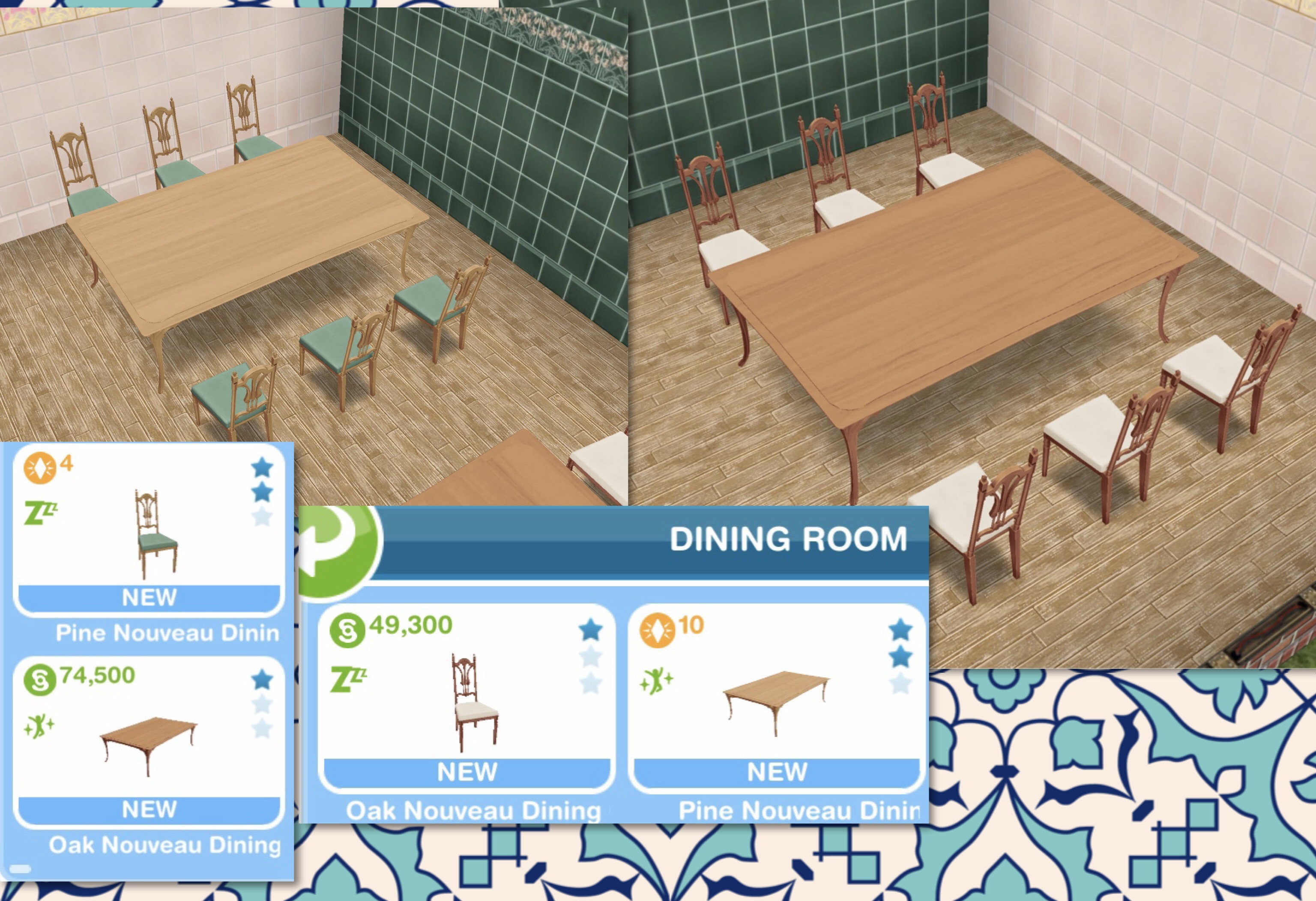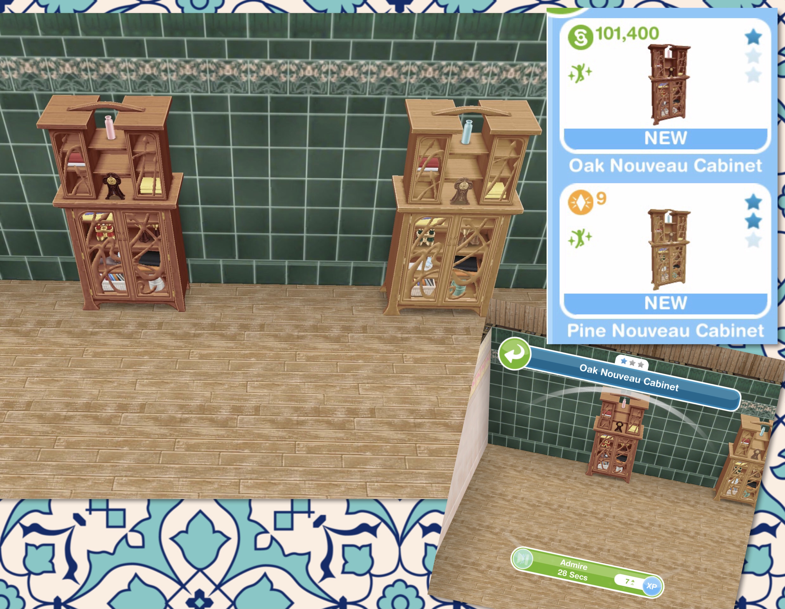 Decorations: Oak (S101,400) and Pine (9LP) Nouveau Cabinets