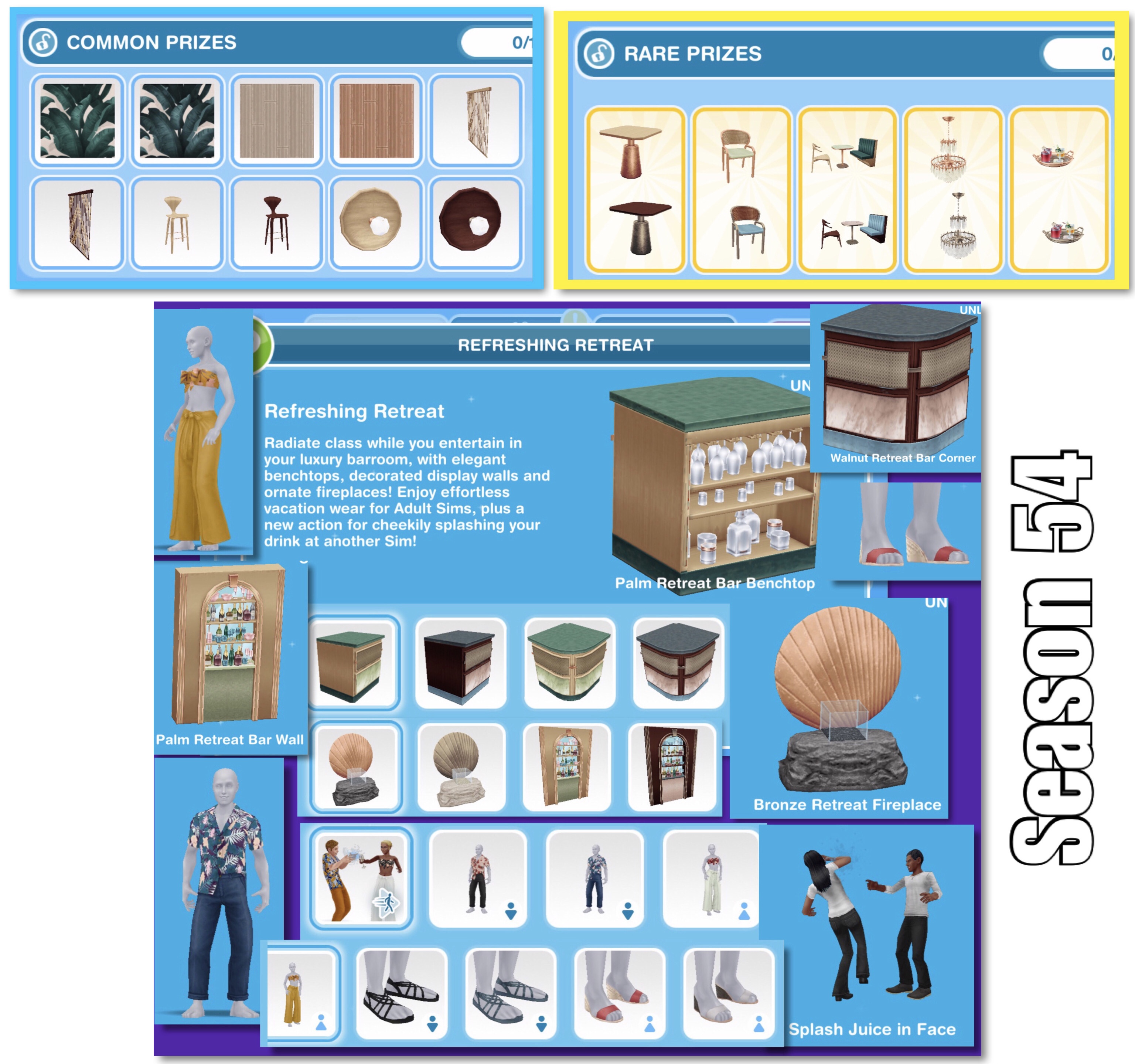 - 3 Star Rating: Palm Retreat Bar Stool (3SP) Palm Retreat Booth (6SP) Palm Retreat Dining Table (9SP) Bronze Retreat Drinks Tray (7SP) Palm Retreat Bar Countertop (10SP) Bronze Retreat Fireplace (14SP)