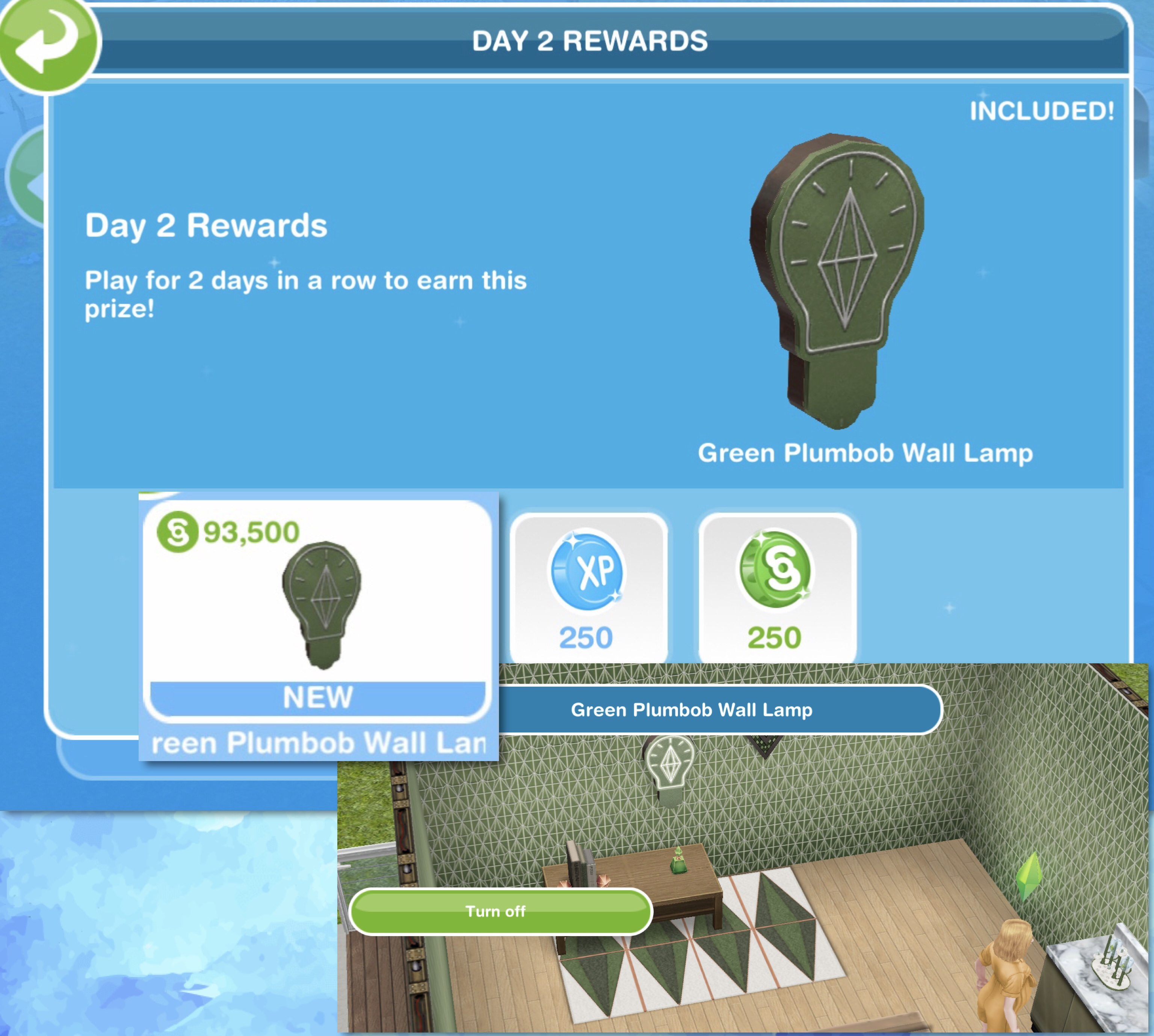 - Lighting: Green Plumbob Wall Lamp (S93,500)