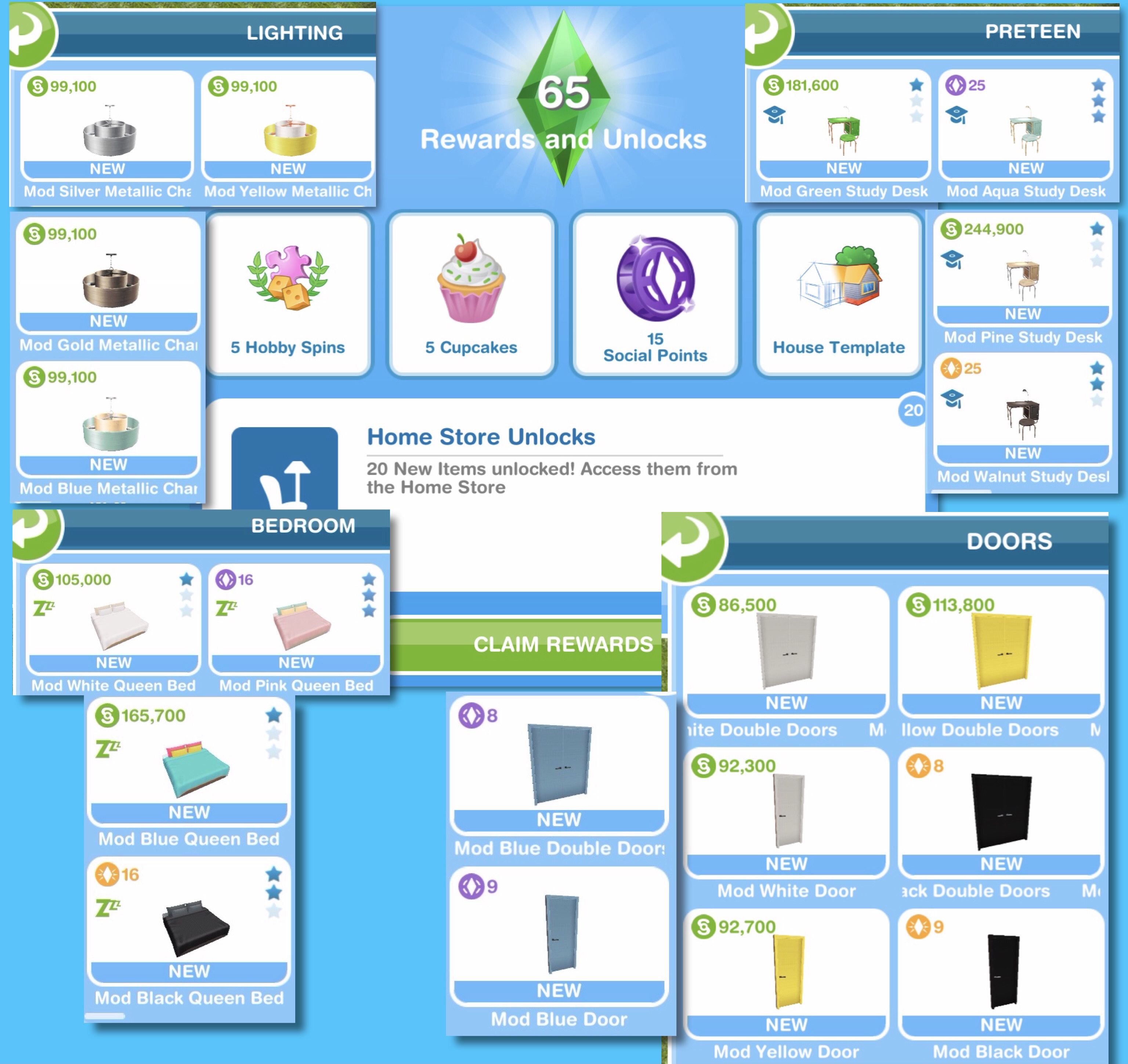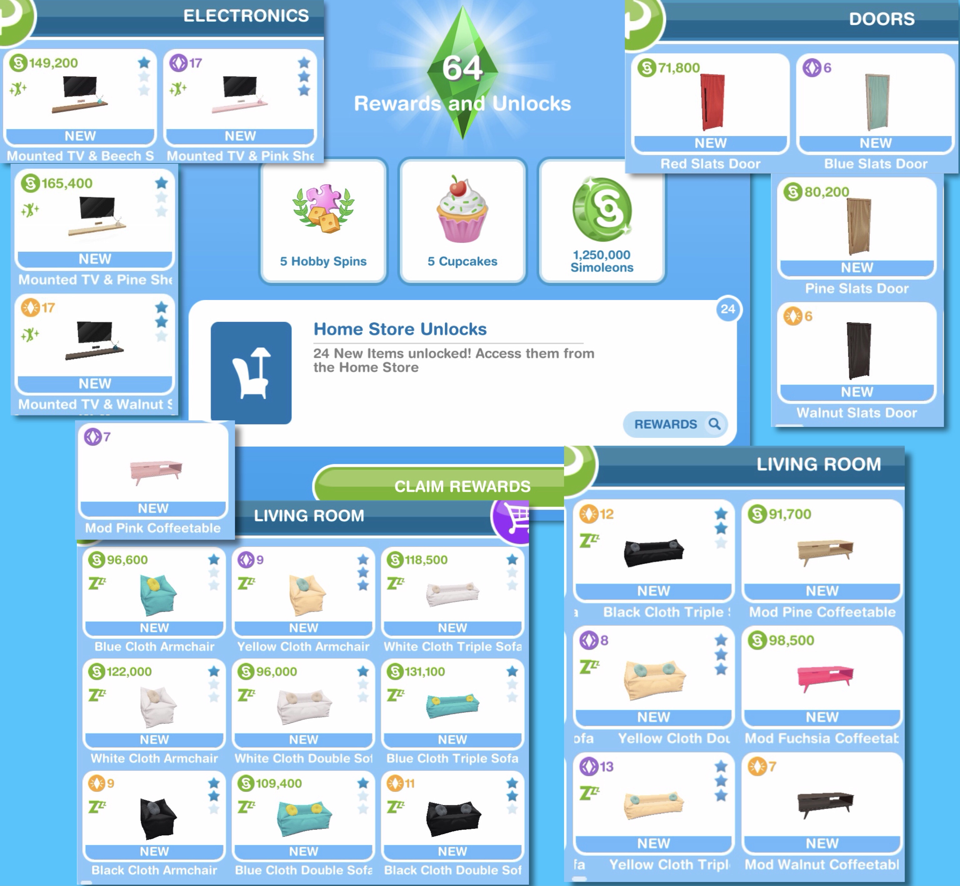 - Level 64: 5 Hobby Spins, 5 Cupcakes, 1,250,000