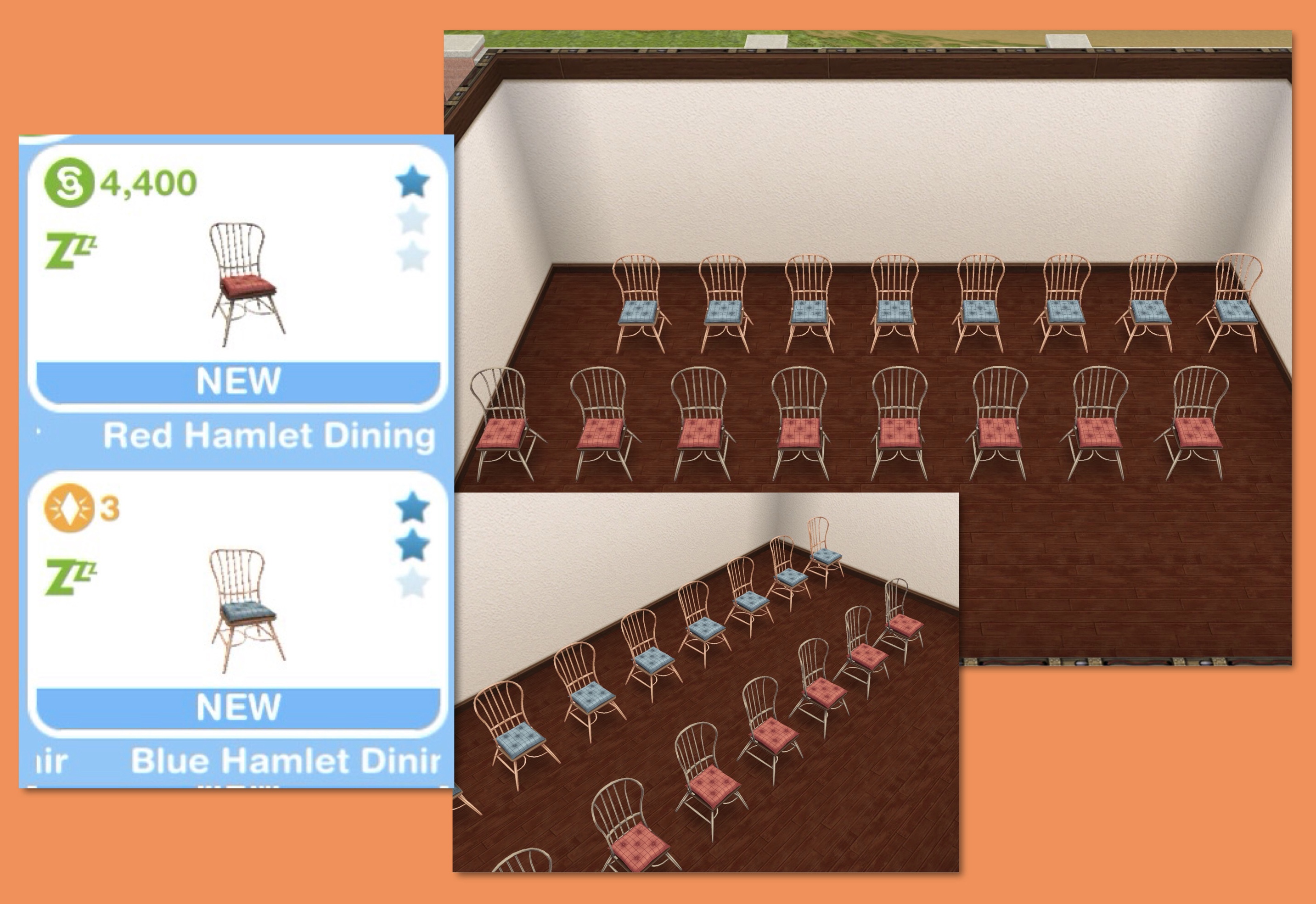 Dining Room: Red (S4,400) and Blue (3LP) Hamlet Dining Chairs