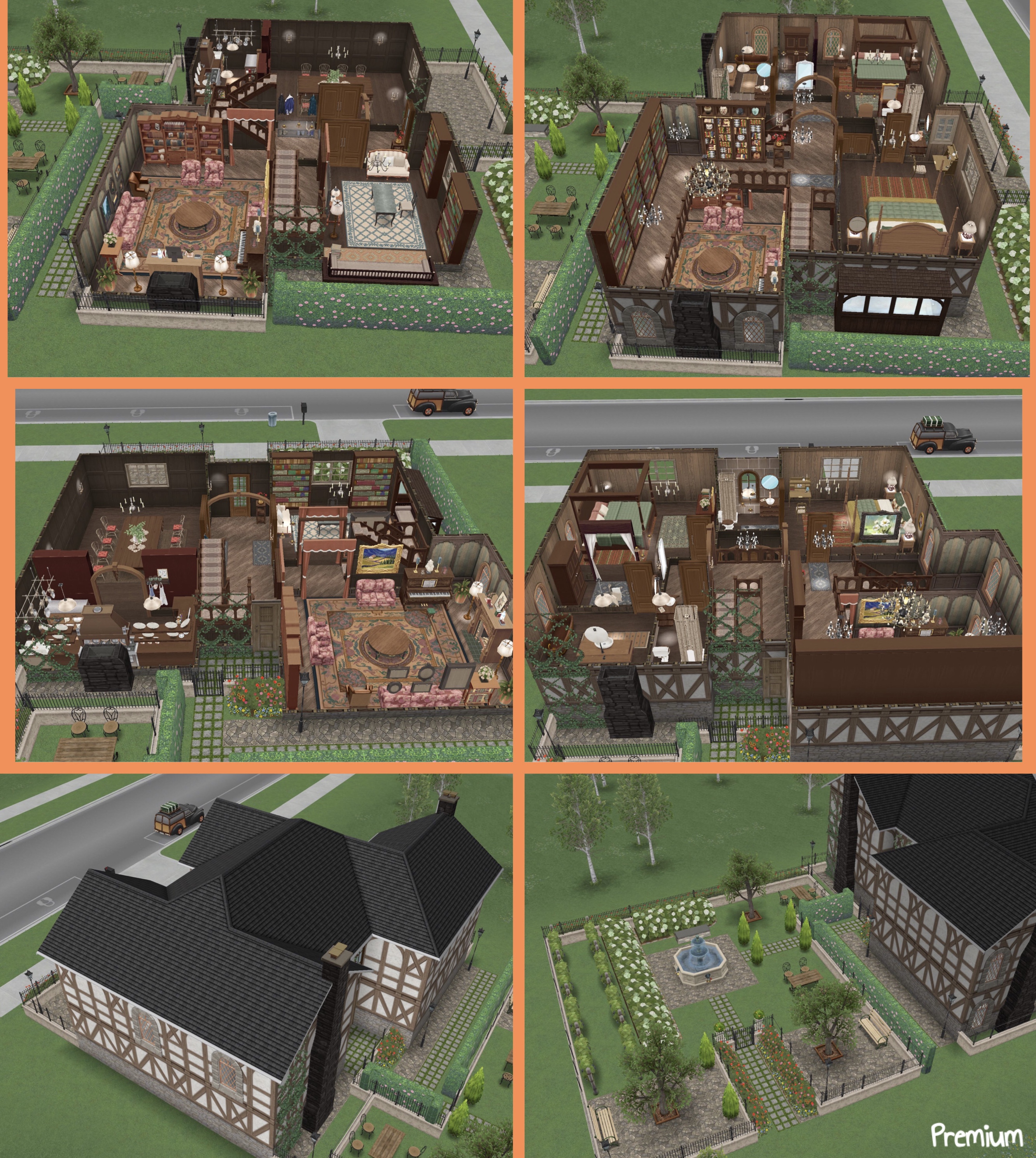 This template can be found under the driveway homes tab and built on a standard or premium residence, the first one is free then they cost simoleons depending on how many houses you have already built. This house comes with a free black mortimobile car and you can add up to 3 more cars.