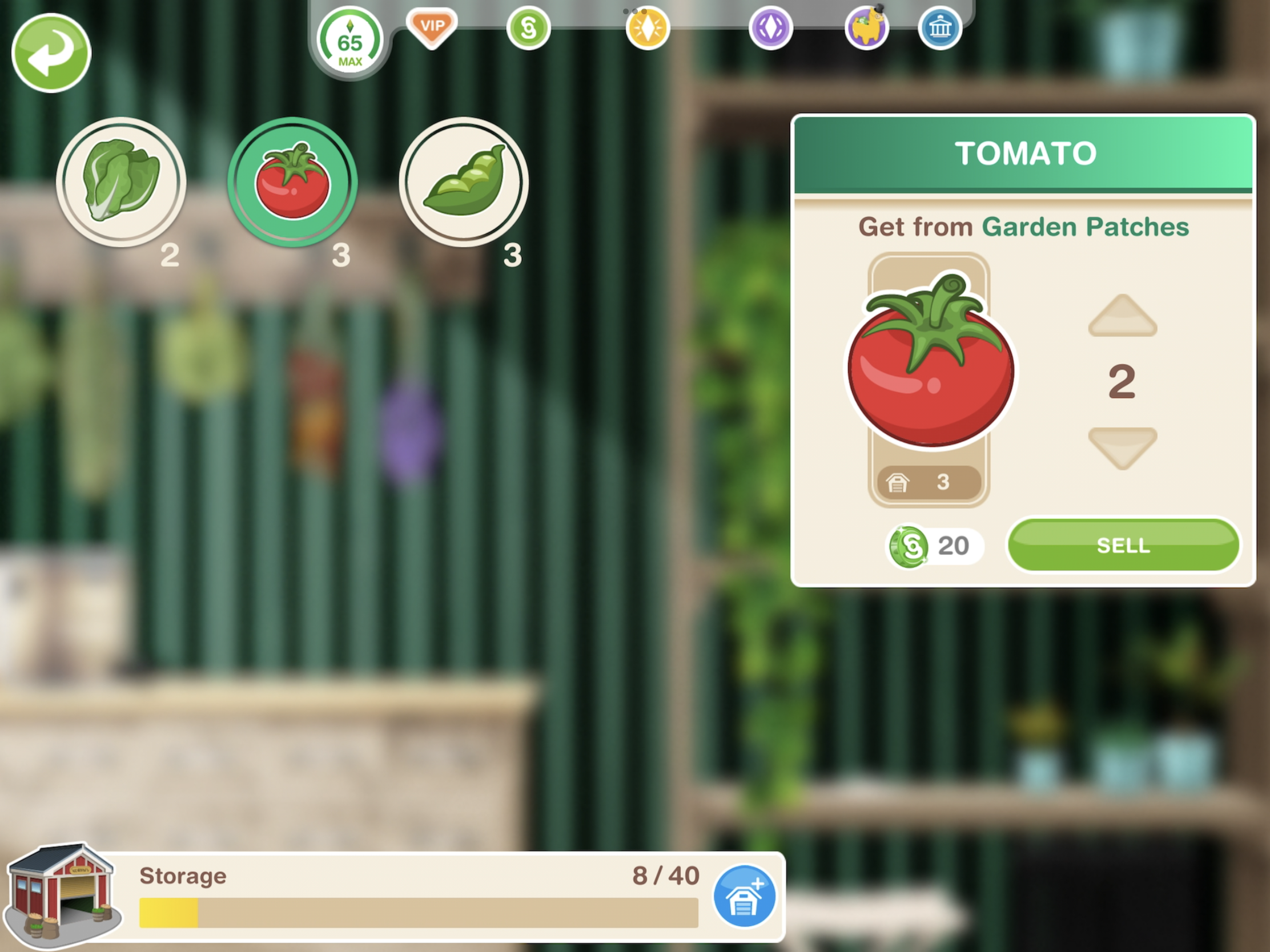 Once the time is up the produce will be ready to collect, click on the fully grown items and the produce will go into the storage shed: