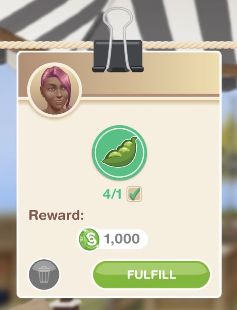 At the Community Market you will receive requests from customers, you need to grow the items they require to complete their requests and earn simoleons.