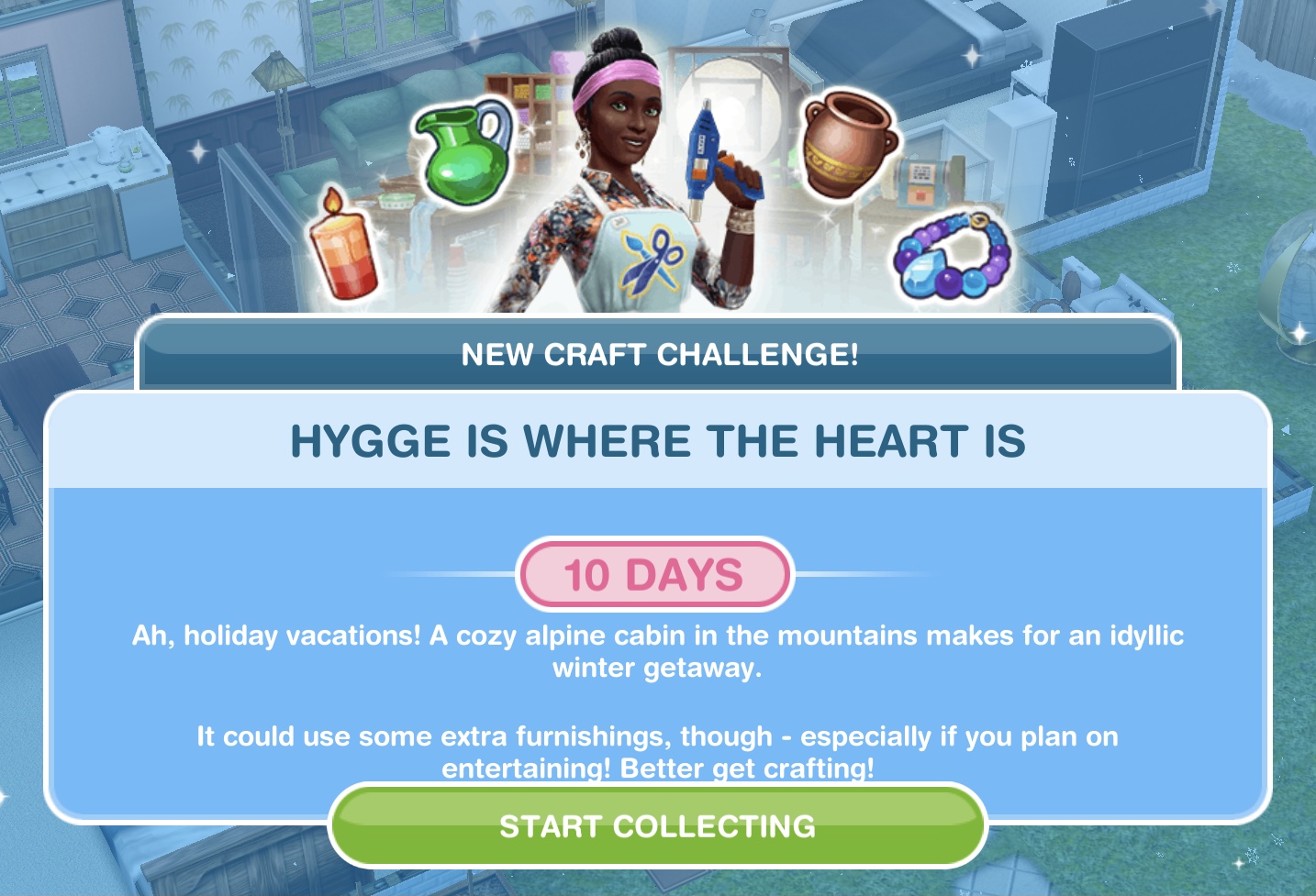 NOTE: if you did another Craft Challenge then you will find your arts and crafts stations in your inventory (or in the house you left them at) you will only be able to use the candle ones until you unlock the other stations in this event