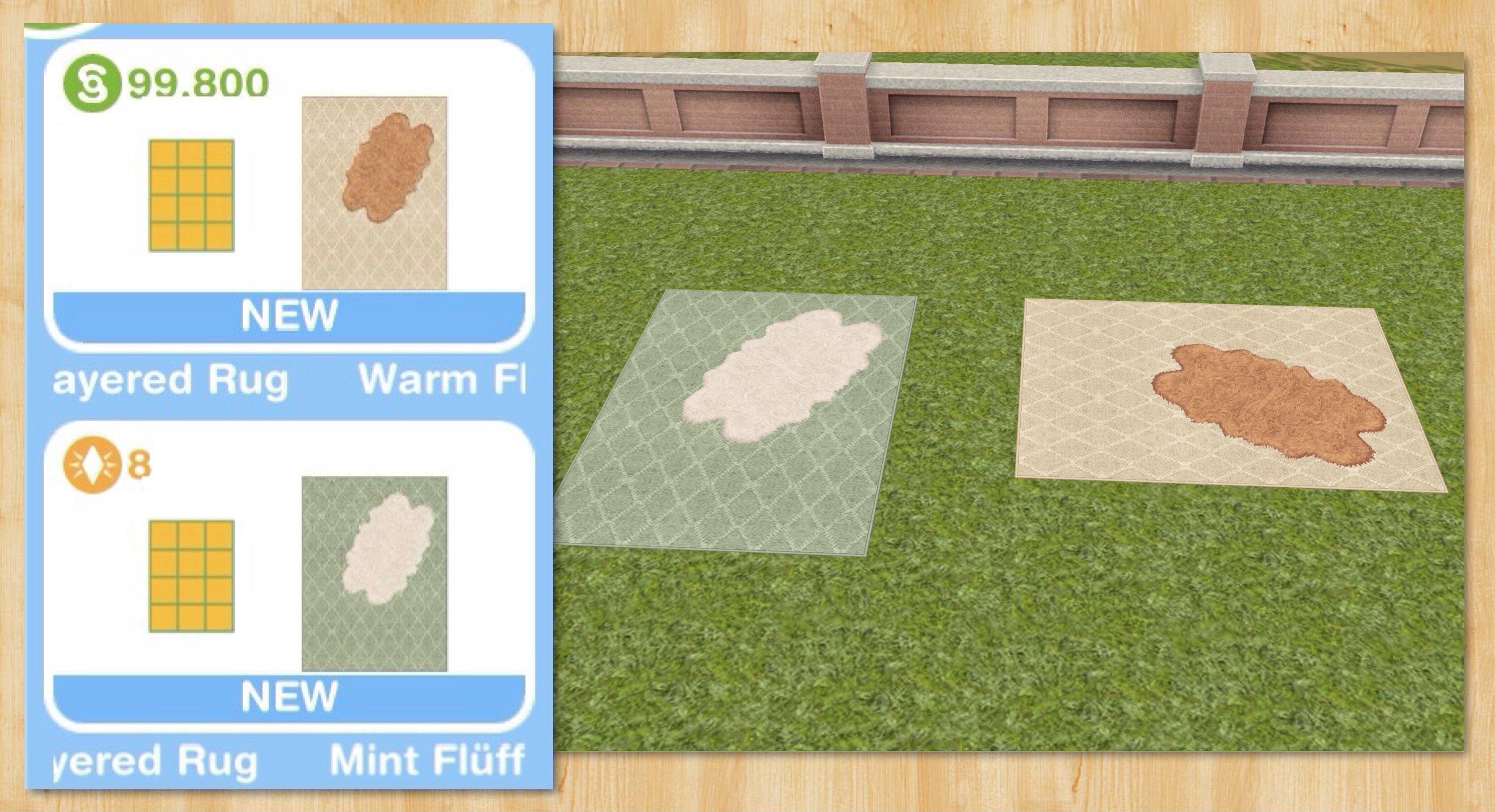 Rugs: Warm (S99,800) and Mint (8LP) Flüff Layered Rugs