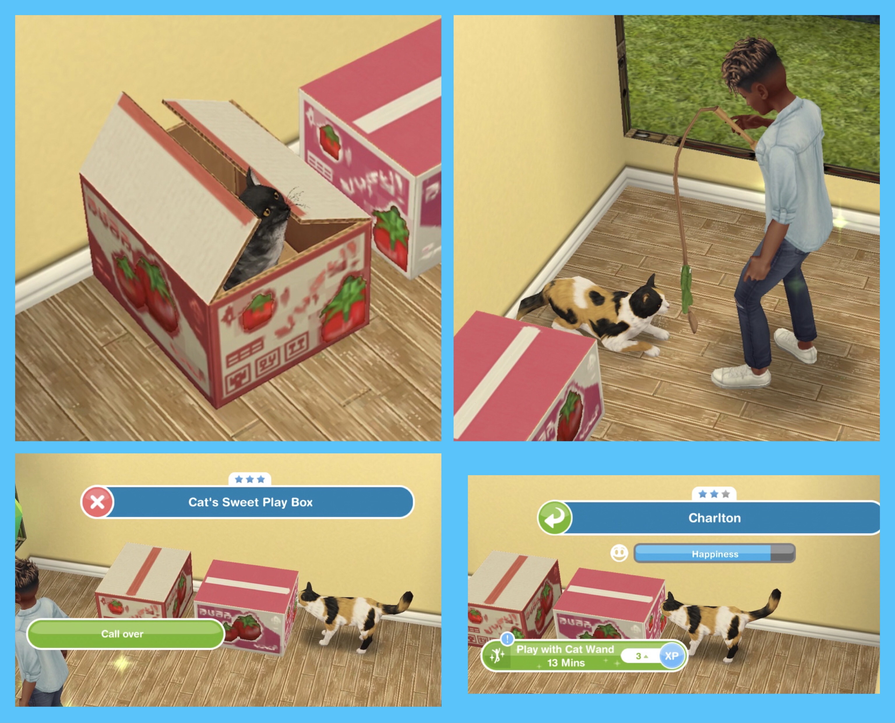 Cats can play in boxes (click call over, this doesn’t always work but they can also use the boxes on their own)