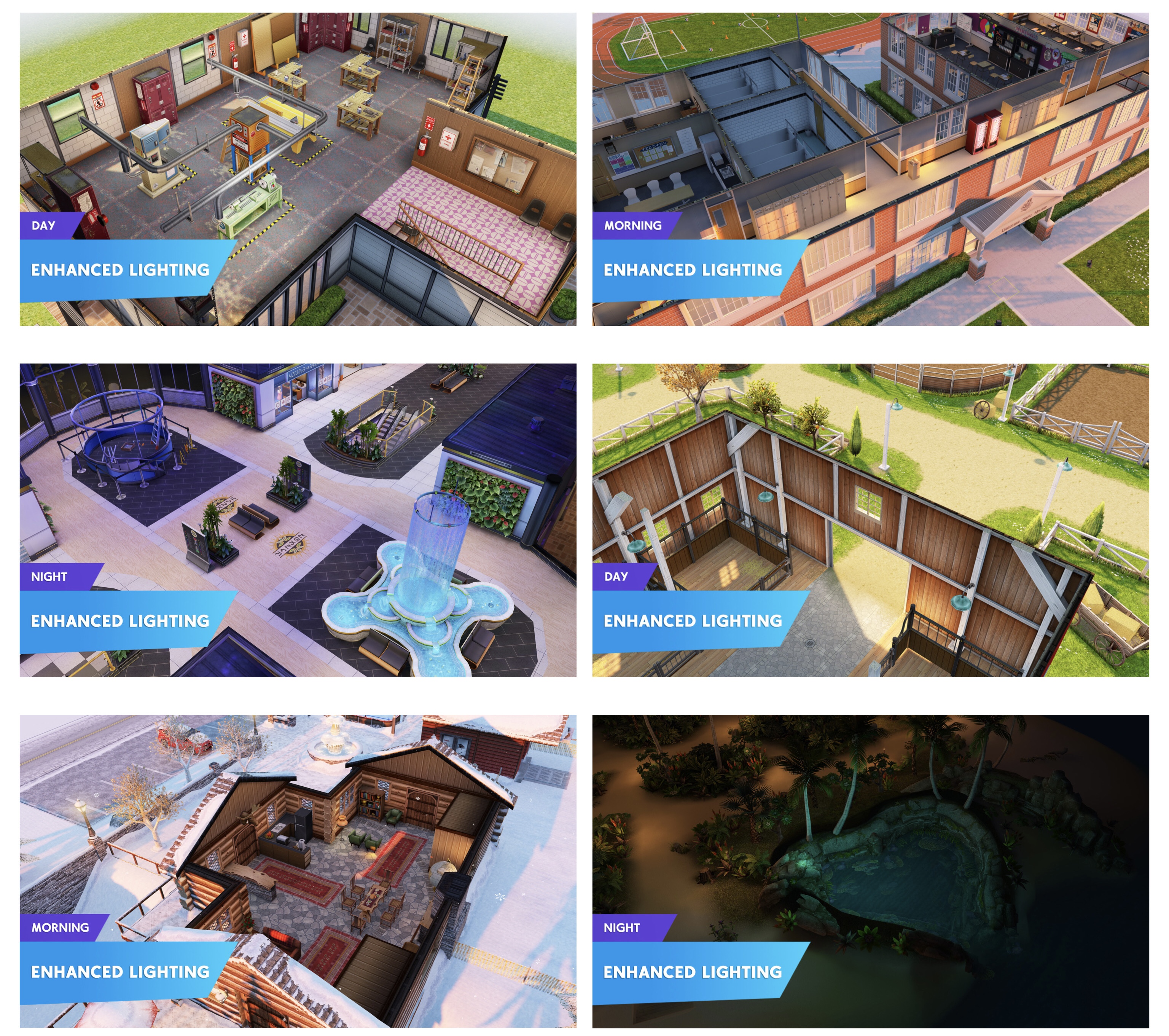 NOTE: if you do not see the enhanced lighting already on your home lots you will not see it at the community spaces (this feature only works on newer devices)