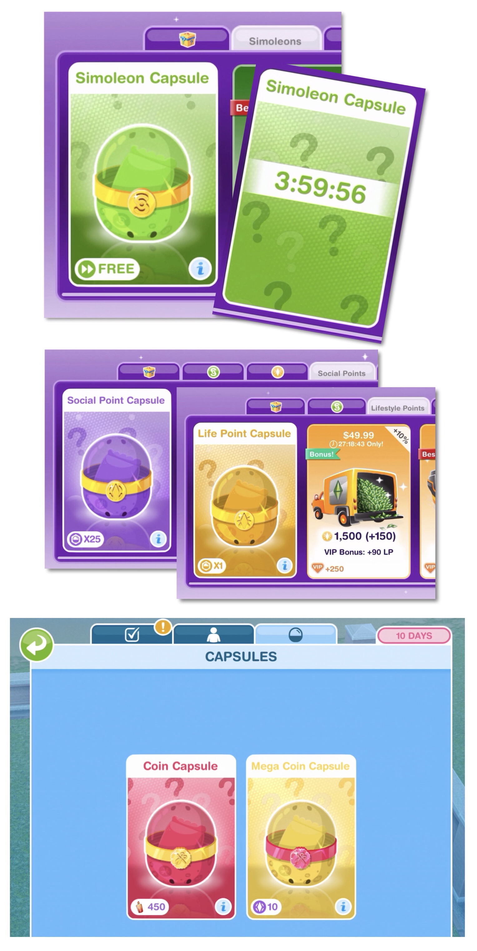 • Capsules have replaced the Life Point Lotus, Simoleon Sprout and Social Point Flower so there is no need for a garden patch anymore. You can find these in the online store.