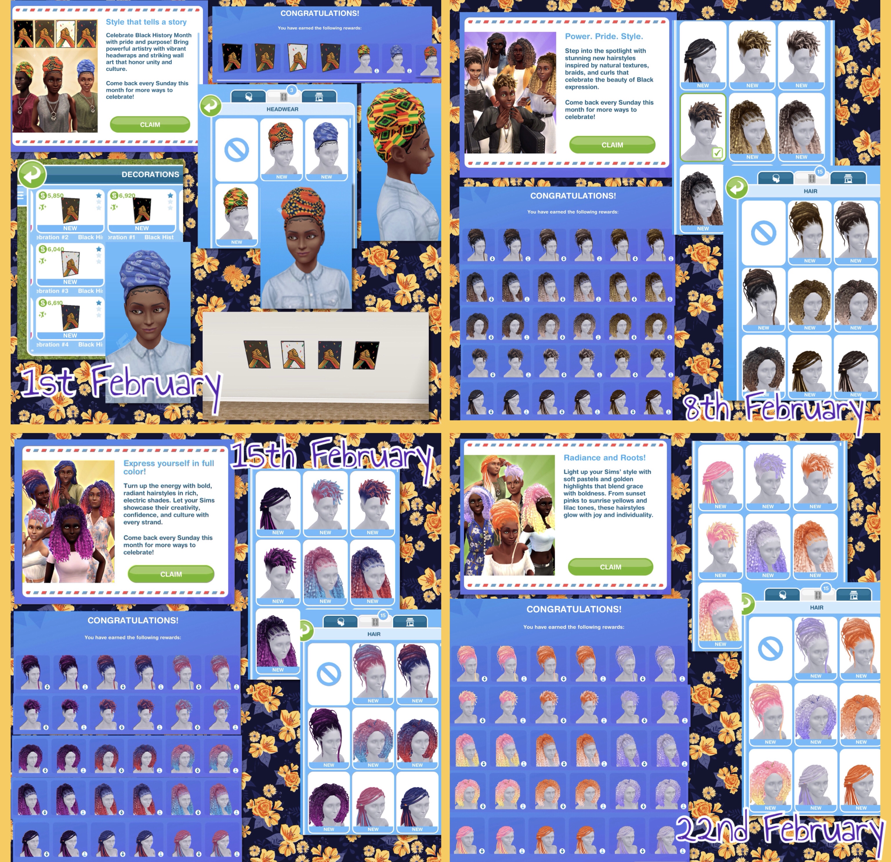 The Embrace the Fro Hair Hobby Event (not available yet) will return on 23rd February for 7 days, complete to unlock hairstyles for your adult sims