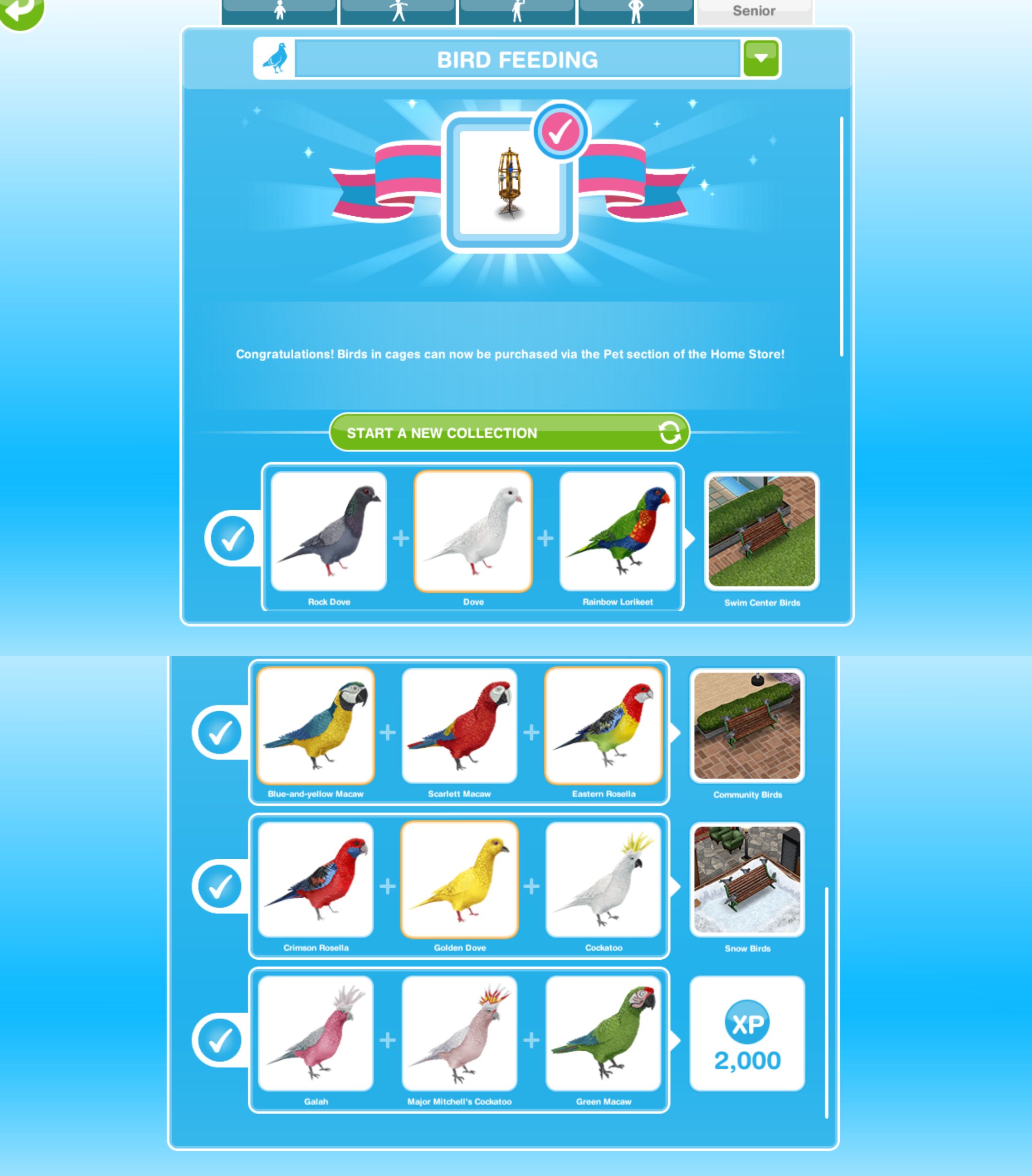 - The first time you complete this collection you unlock a caged bird (they can be found in the pet section of the home store and cost 10LP)