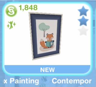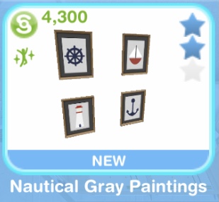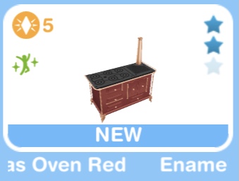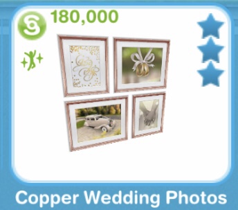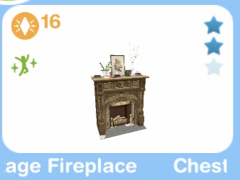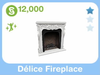 | Delice Fireplace |  | S12,000 | French Romance | S1,200 | -Miscellaneous -Simoleons -1 Star |