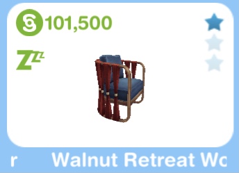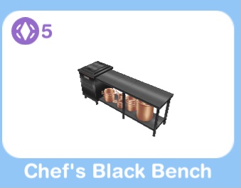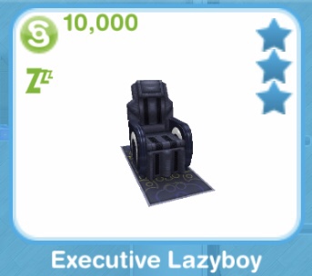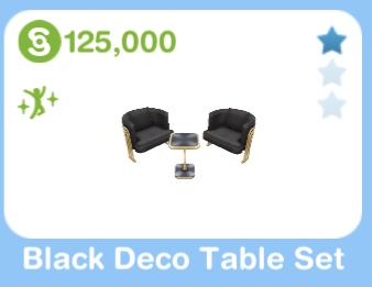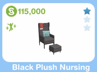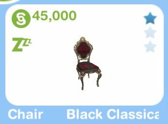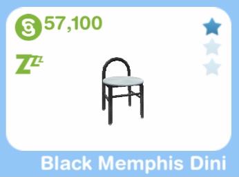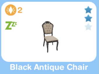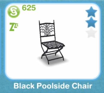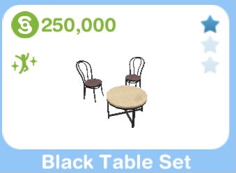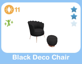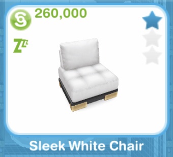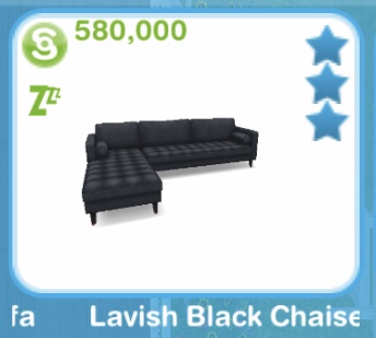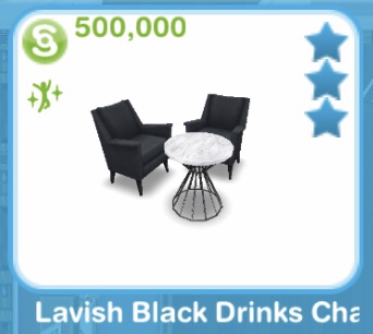 | Lavish Black Drinks Chairs |  | S500,000 | Sophisticated Socialite | S5,000 | -Chairs & Stools -Simoleons -3 Stars |