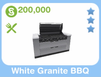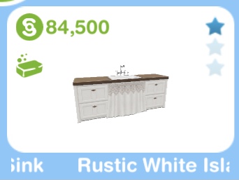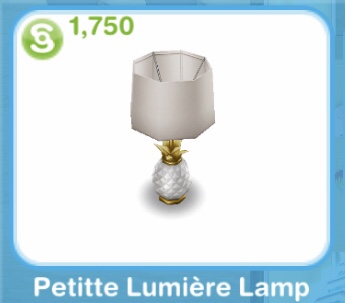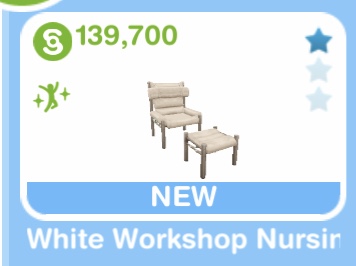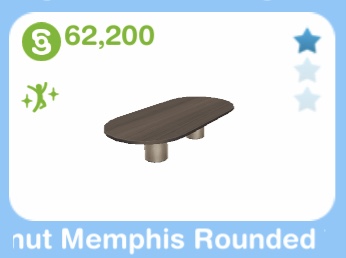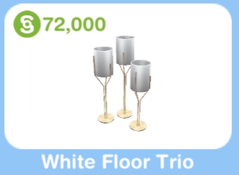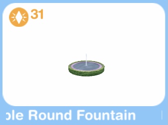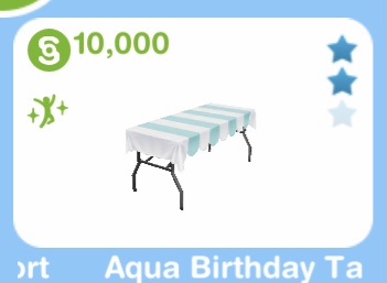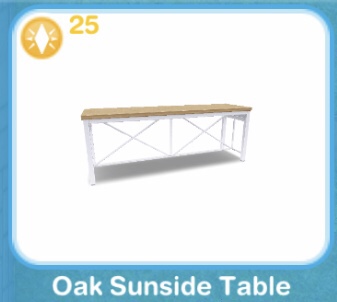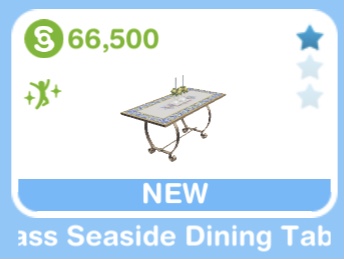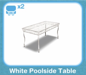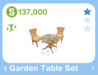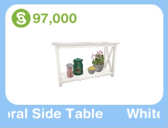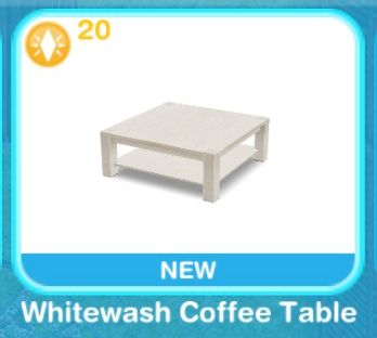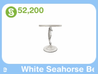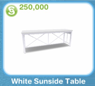 | White Sunburst Table |  | S95,000 | Poolside Paradise | S9,500 | -Side Tables -Simoleons -No Stars |