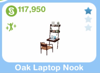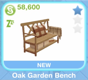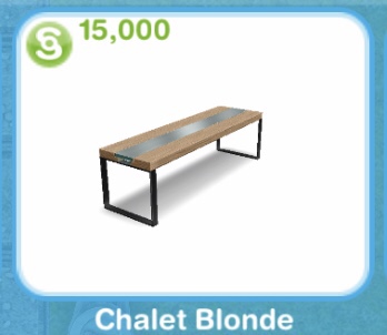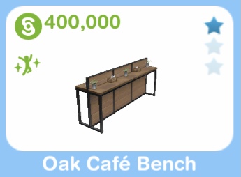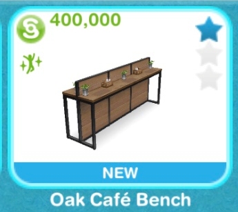 | Oak Cafe Bench |  | S400,000 | Cafe Grande | S40,000 | -Coffee Tables & Desks -Simoleons -1 Star |