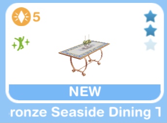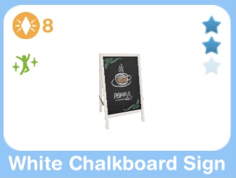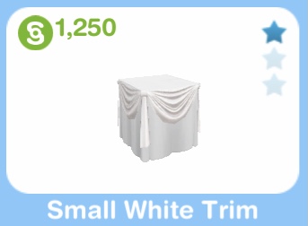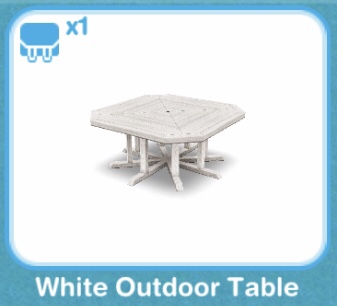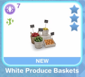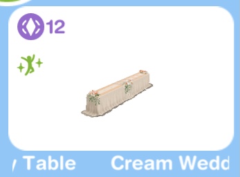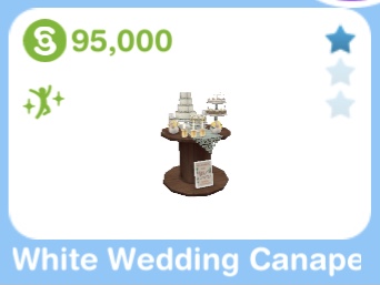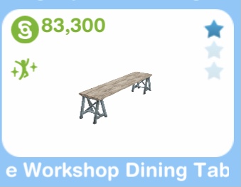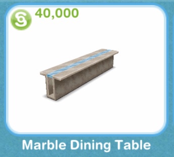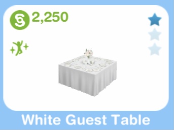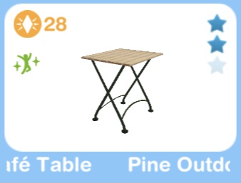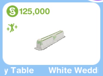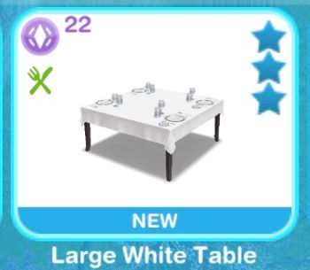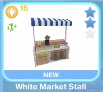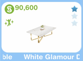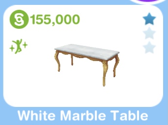 | White Market Table |  | S77,500 | Produce Market | S7,750 | -Side Tables -Simoleons -No Stars |
