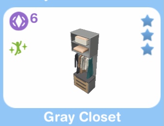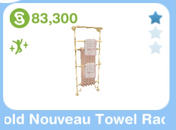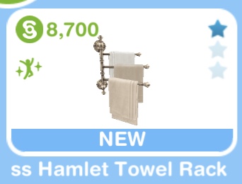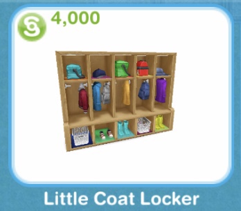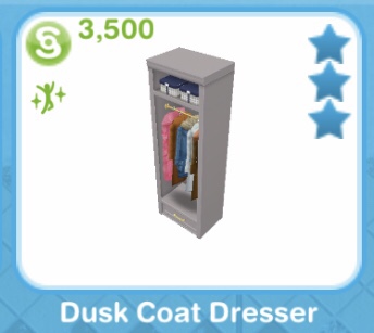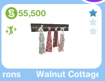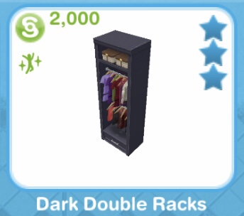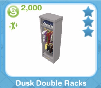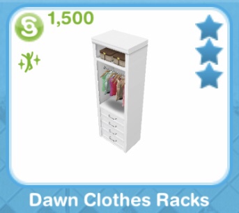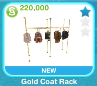 | Clothes Rack |  | S8,000 | Luxury Laundry | S800 | -Miscellaneous -Simoleons -3 Stars |