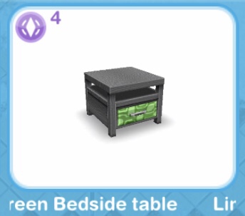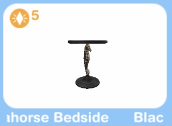 | Black Deco Side Table |  | S68,000 | Belle Hotel | S6,800 | -Side Tables -Simoleons -No Stars |