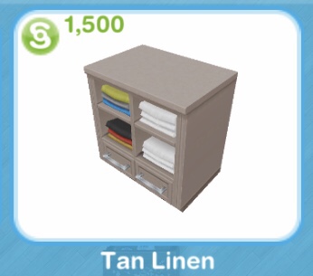 | Tan 1×1 Ottoman |  | S5,000 | Custom Closets | S500 | -Chairs & Stools -Simoleons -3 Stars |