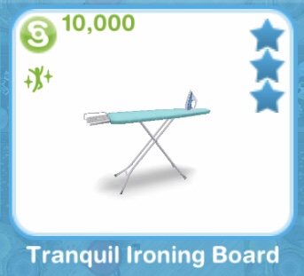 | Tranquil Ironing Board |  | S10,000 | Luxury Laundry | S1,000 | -Miscellaneous -Simoleons -3 Stars |