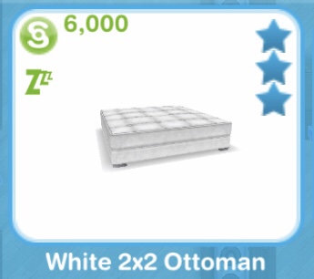 | White 2×2 Ottoman |  | S6,000 | Custom Closets | S600 | -Chairs & Stools -Simoleons -3 Stars |