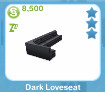 | Dark Loveseat |  | S8,500 | Party Time | S850 | -Sofa Sets -Simoleons -3 Stars |