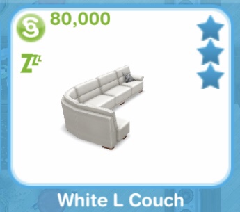 | White Plush L Couch |  | S350,000 | Glam Mansion | S35,000 | -Sofa Sets -Simoleons -1 Star |