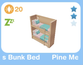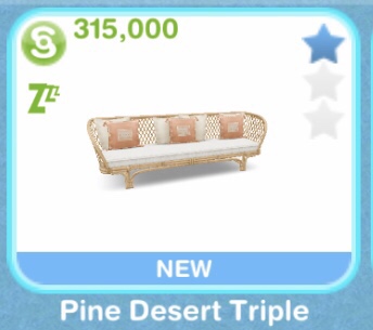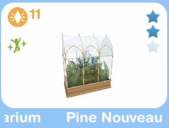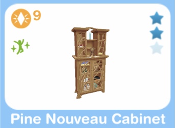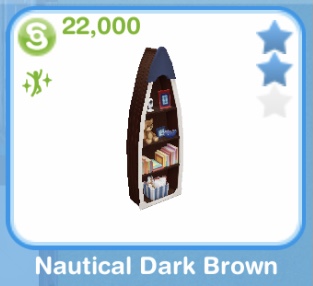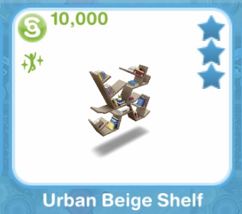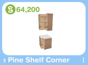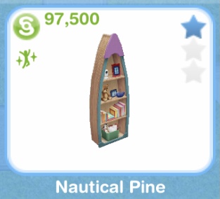 | Triangular Pine |  | S76,000 | Family Furnishings | S7,600 | -Bookcases & Shelving -Simoleons -1 Star |