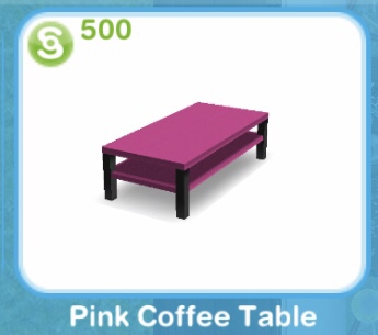 | Pink Cloud Table |  | S71,250 | Share Your Care | S7,125 | -Side Tables -Simoleons -No Stars |