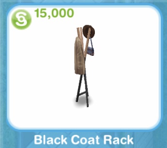 | Modern Black Coat Rack |  | S160,000 | Sophisticated Socialite | S16,000 | -Miscellaneous -Simoleons -3 Stars |