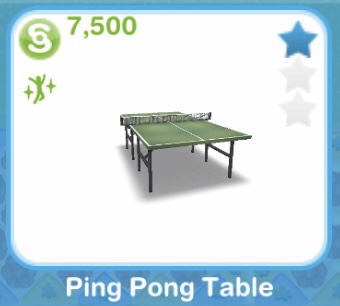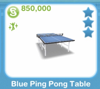 | Blue Ping Pong Table |  | S850,000 | Grand Garages | S85,000 | -Recreation -Simoleons -3 Stars |