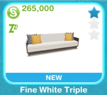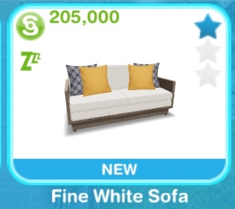 | White Curved Corner Chair |  | S153,000 | Captivating Coast | S15,300 | -Sofa Sets -Simoleons -1 Star |