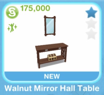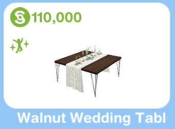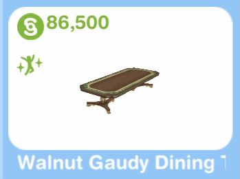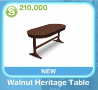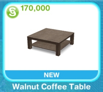 | Walnut Coffee Table |  | S170,000 | Fine Dining | S17,000 | -Coffee Tables & Desks -Simoleons -No Stars |