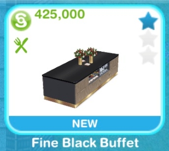 | Lavish Black Buffet |  | S280,000 | Sophisticated Socialite | S28,000 | -Buffet & Hall Tables -Simoleons -No Stars |