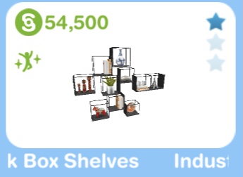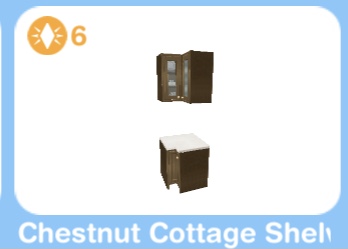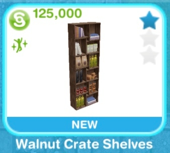 | Walnut Crate Shelves |  | S125,000 | Cafe Grande | S12,500 | -Bookcases & Shelving -Simoleons -1 Star |