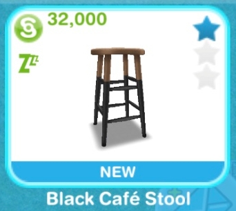 | Black Cafe Stool |  | S32,000 | Cafe Grande | S3,200 | -Chairs & Stools -Simoleons -1 Star |