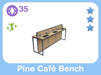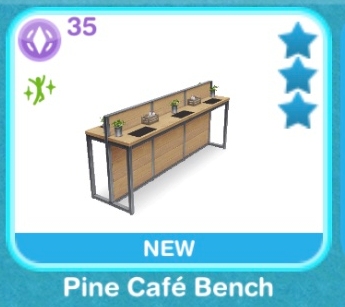| Pine Cafe Bench |  | 35SP | Cafe Grande | S1,750 | -Coffee Tables & Desks -Socialpoints -3 Stars |